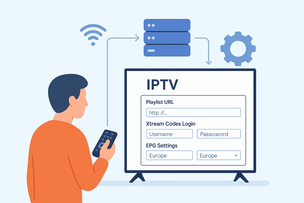 In simple terms: IPTV streaming allows you to watch TV over the internet, using apps or IPTV players to load playlists (M3U, Xtream Codes, Stalker portals) provided by an IPTV service.